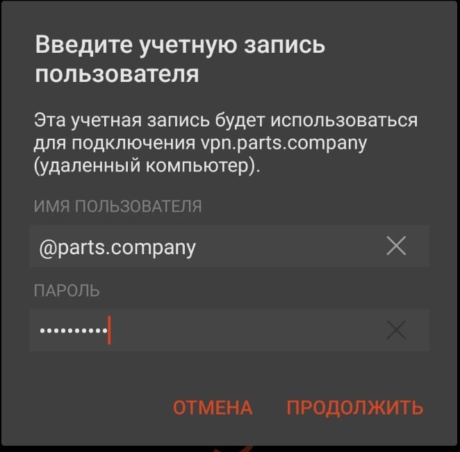 - в поле «Имя пользователя» — введите Ваш логин в формате n.surname@parts.company