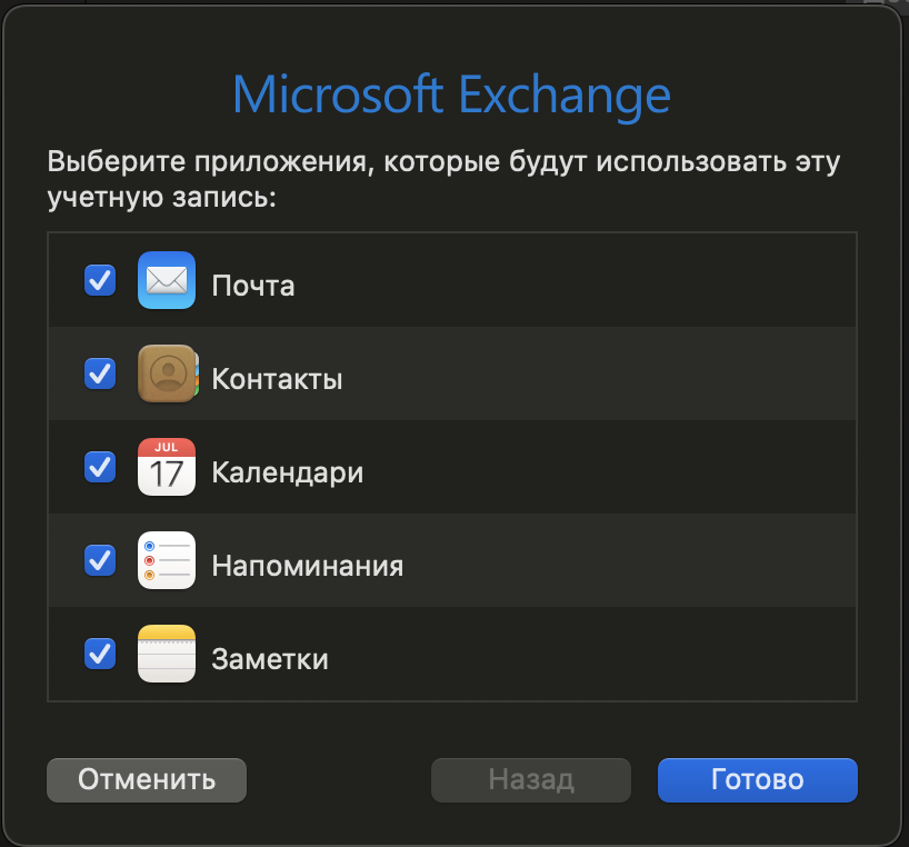 Ваша почта станет доступна для использования в приложении Mail, как и выбранные дополнительно сервисы(Контакты, Календари, Напоминания, Заметки) в соответствующих приложениях.